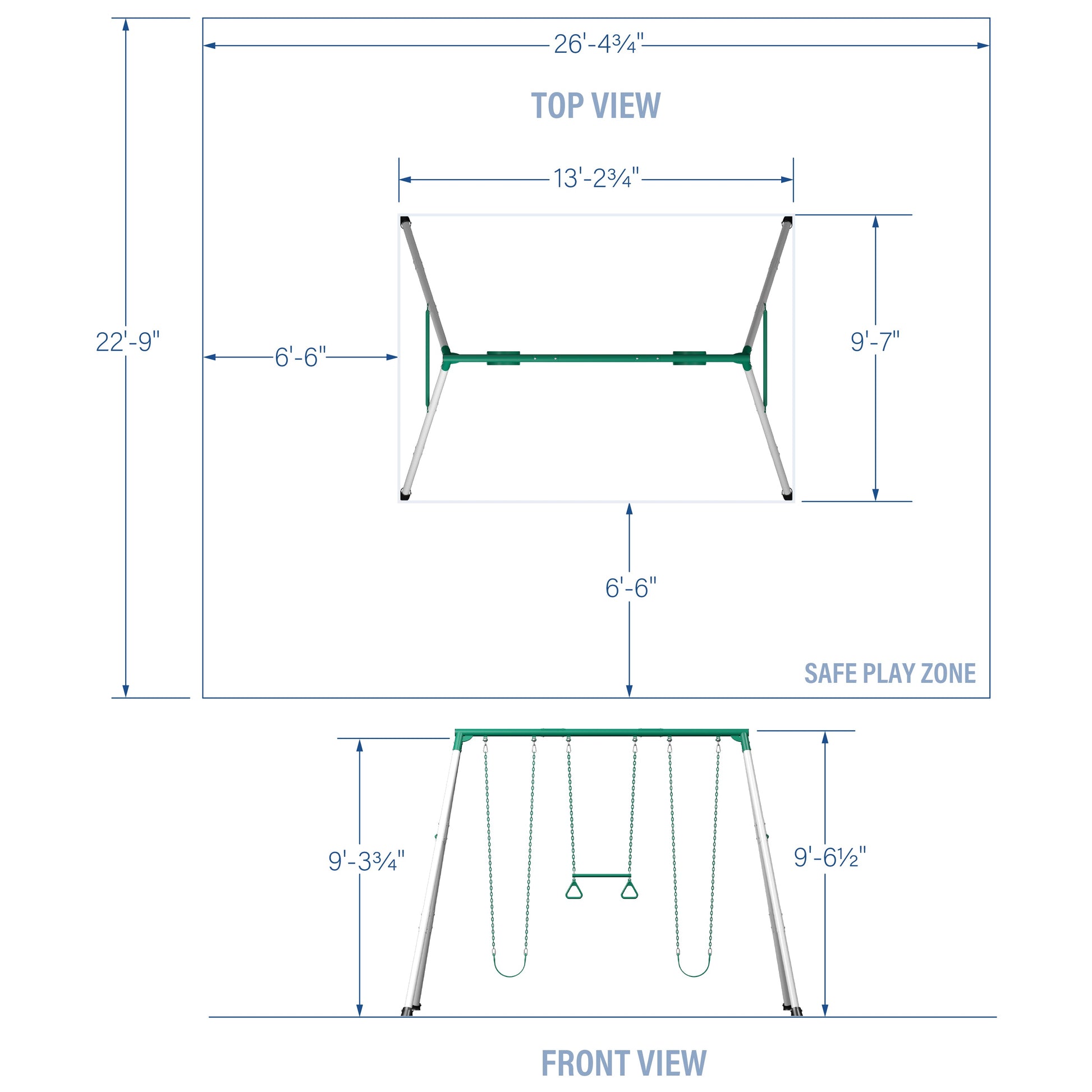 Create lasting memories with the Big Brutus Galvanized Steel Swing Set from Backyard Discovery. Standing nearly 10-feet-tall, this heavy-duty outdoor swing set redefines durability and play for little ones. Engineered with robust, powder-coated steel, the Big Brutus offers unparalleled strength for lasting outdoor fun and memories. Its heavy-duty A-frame construction provides exceptional stability, ensuring a safe and thrilling play experience for children. Two durable belt swings and a metal trapeze bar invite endless active play, allowing kids to soar, swing, and practice their acrobatic skills. Plus, the swing chains feature a smooth coating for added convenience and a comfy grip. Designed for maximum durability, this metal swing set stands up to harsh weather conditions. It's crafted from premium galvanized steel to ensure long-lasting performance while making maintenance a breeze. Molded feet with included anchors provide rock-solid stability, while heavy-duty hardware promises years of reliable use, giving parents peace of mind while children explore and play. With a ready-to-assemble design, this backyard swing set kit offers a simple setup and is backed by a 5-year warranty. Built to withstand years of active play, the Big Brutus Swing Set provides a dependable outdoor play experience that keeps kids moving and having fun. Now available with enhanced quality and crafted for lasting performance.
