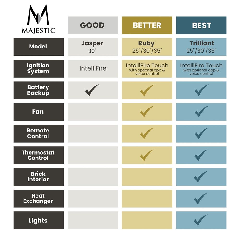 Majestic Trilliant 25-Inch Direct Vent Gas Fireplace Insert Introducing the premium Trilliant gas fireplace insert - the epitome of luxury and functionality. Experience the ultimate warmth and comfort with its built-in fan and heat exchanger, ensuring rapid space heating. The exquisite Canyon Brown interior panels, coupled with enchanting accent lights, create a serene and relaxing ambiance, making it a must-have addition to your home. Discover the perfect blend of convenience and style with the fully loaded Trilliant gas fireplace insert.